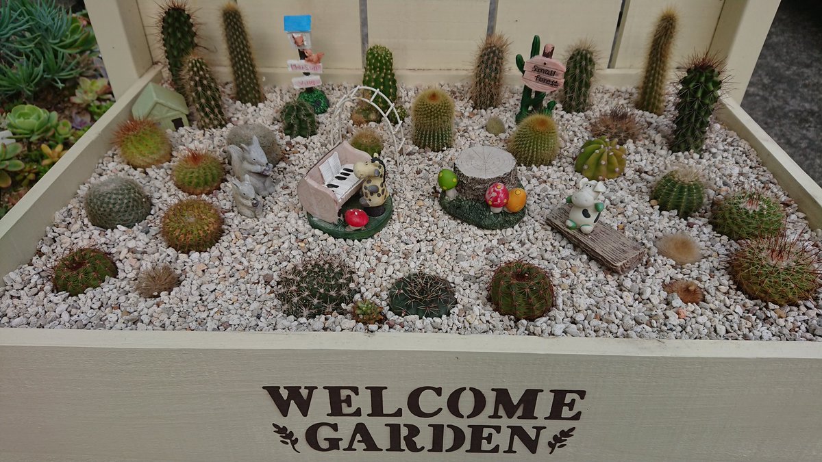 Toma Toma Twitterissa こんにちは 今日も朝から庭作りの為に木箱寄せ植えを解体して 土を入れ替えて 1つは サボテン寄せ植えに仕上げました 旦那さんからは 今度はサボテンランドなん って 言われました 鉢を減らさないとお世話が大変なんだもん
